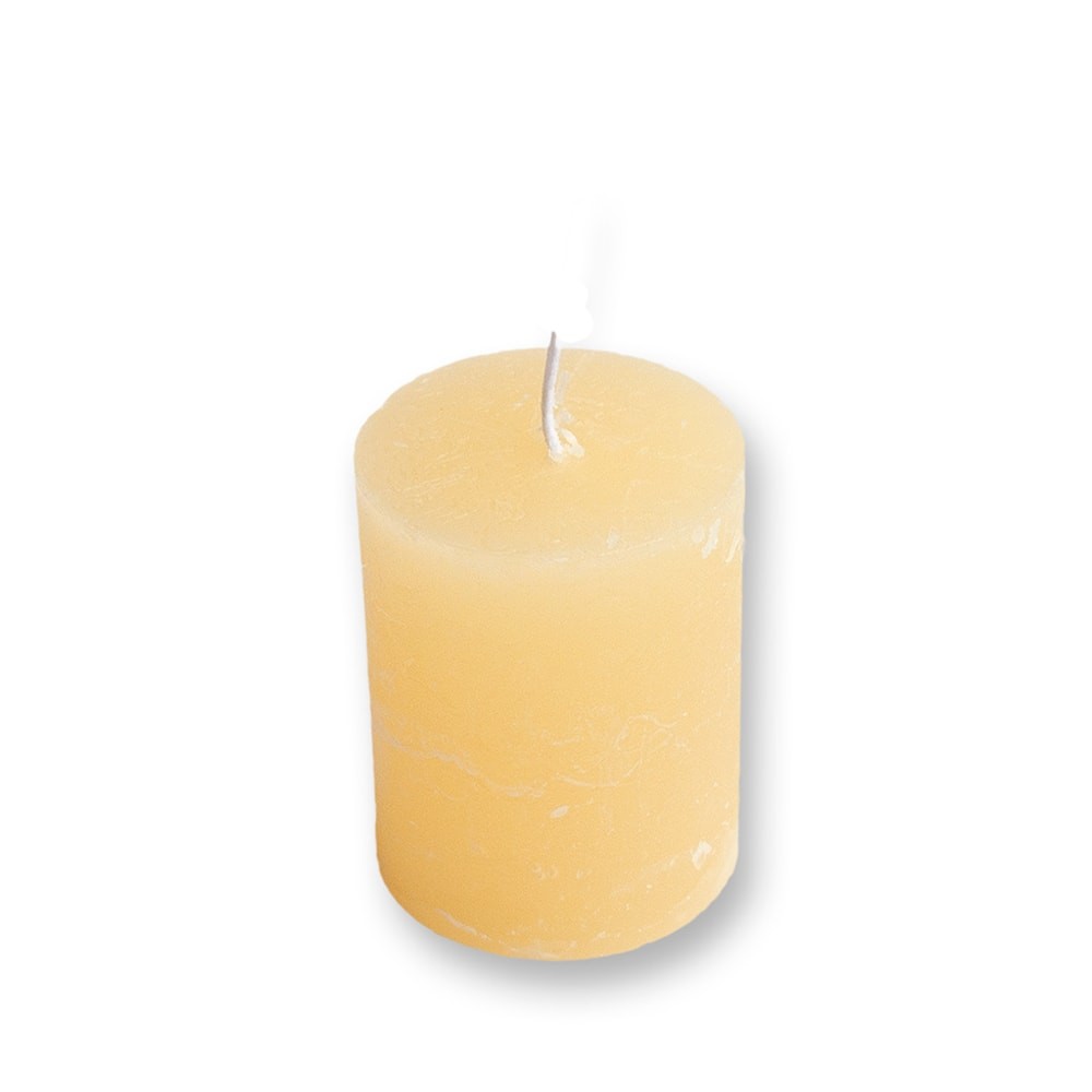 Paraffinból készült gyertya. Rusztikus formája miatt dekorációnak is kiválóan alkalmas.